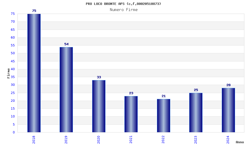| 2018 | 75 | 1.811,74 | 24,16 | 25.218 | 1.499 | 304 | 4 |
