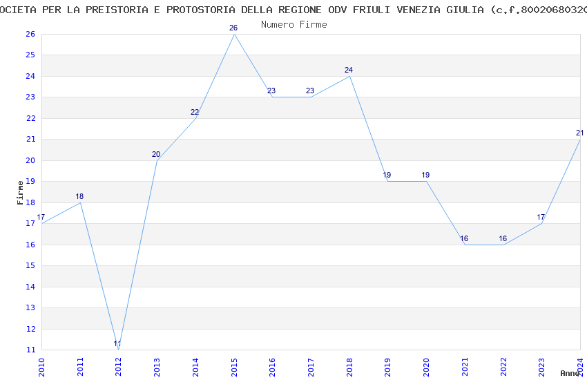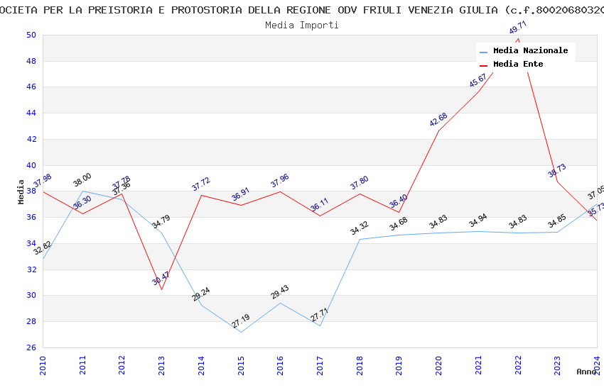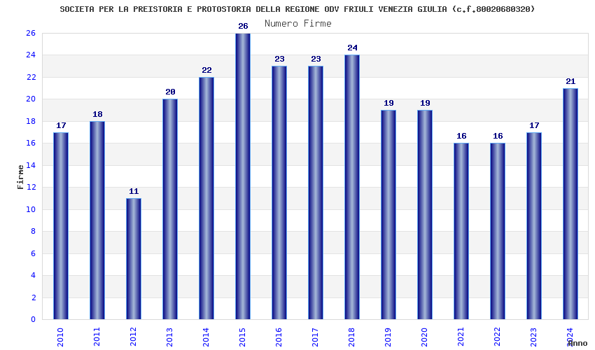 | Anno | Firme | Importi | Media | Naz. | Reg. | Prov. | Comu. |