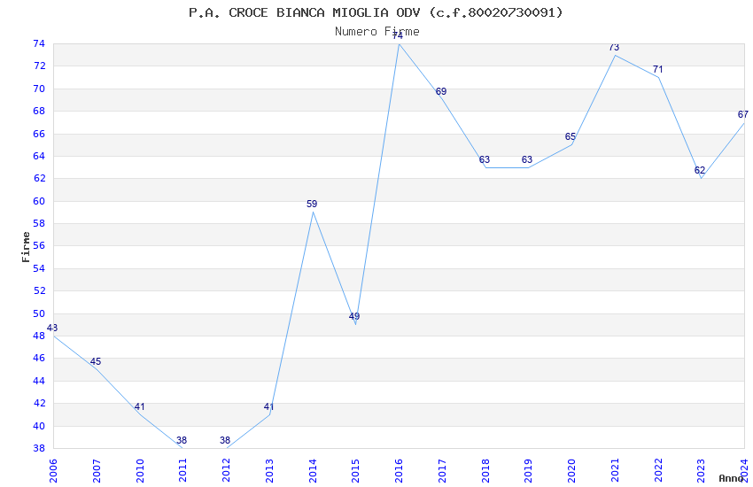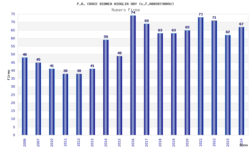 | 2016 | 74 | 1.764,14 | 23,84 | 24.517 | 691 | 113 | 1 |