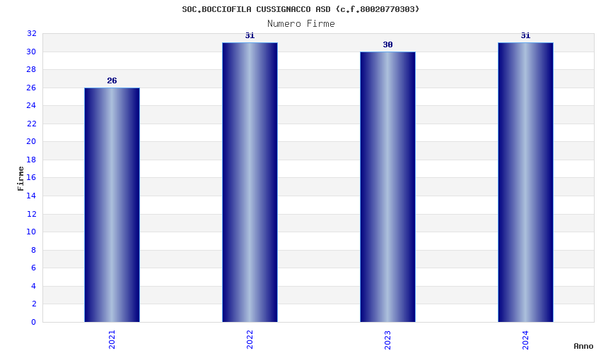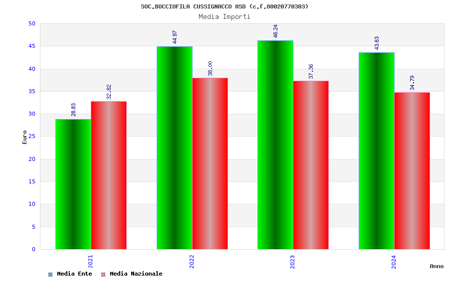 | Anno | Firme | Importi | Media | Naz. | Reg. | Prov. | Comu. |