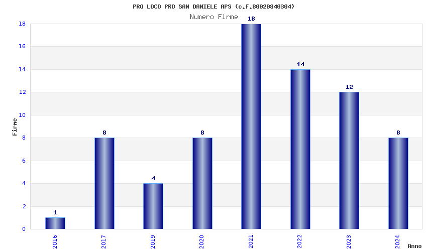 | Anno | Firme | Importi | Media | Naz. | Reg. | Prov. | Comu. |