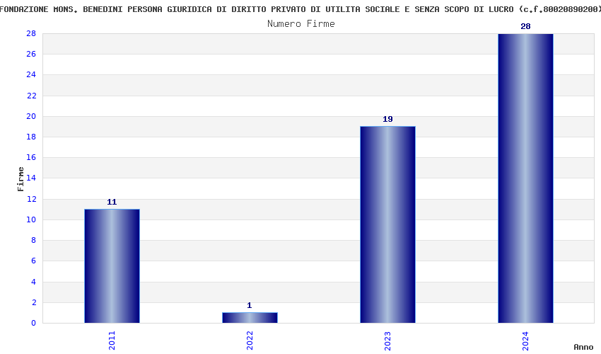 | Anno | Firme | Importi | Media | Naz. | Reg. | Prov. | Comu. |