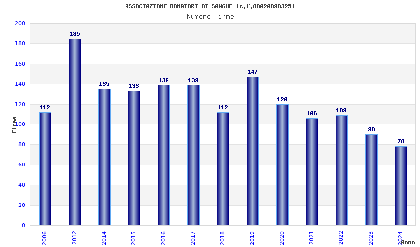 | Anno | Firme | Importi | Media | Naz. | Reg. | Prov. | Comu. |