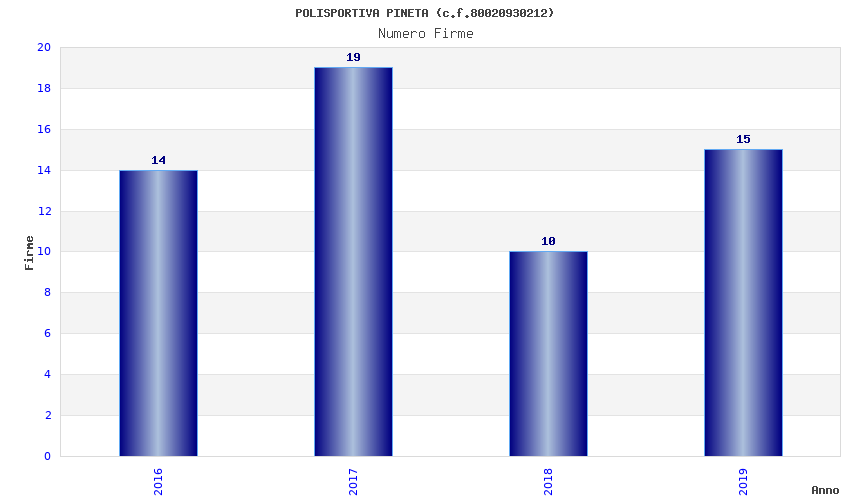 | Anno | Firme | Importi | Media | Naz. | Reg. | Prov. | Comu. |