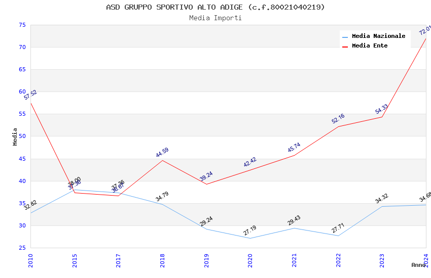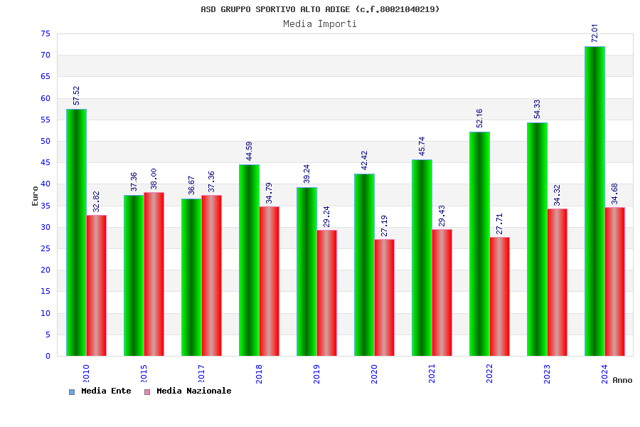 | Anno | Firme | Importi | Media | Naz. | Reg. | Prov. | Comu. |