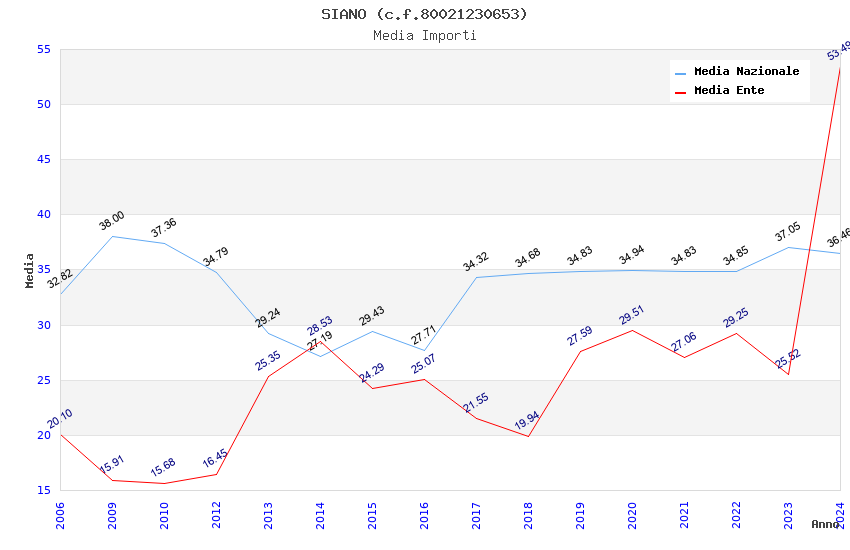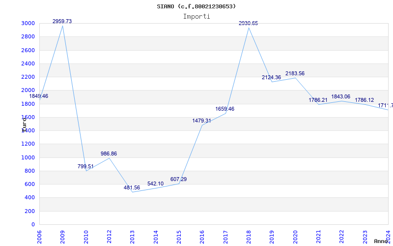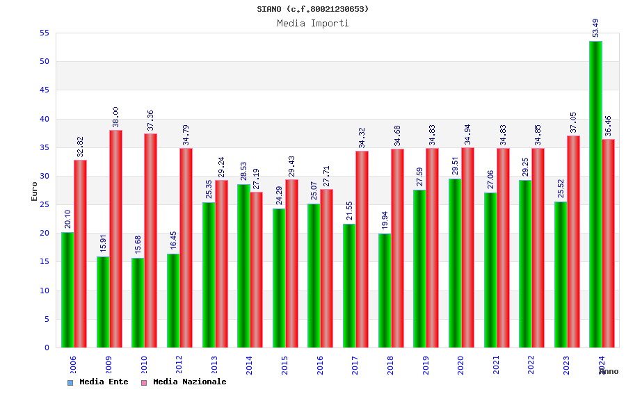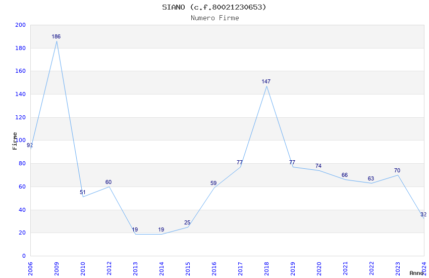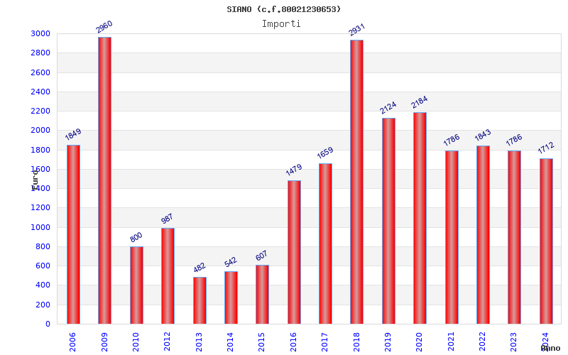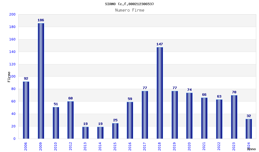 | Anno | Firme | Importi | Media | Naz. | Reg. | Prov. | Comu. |