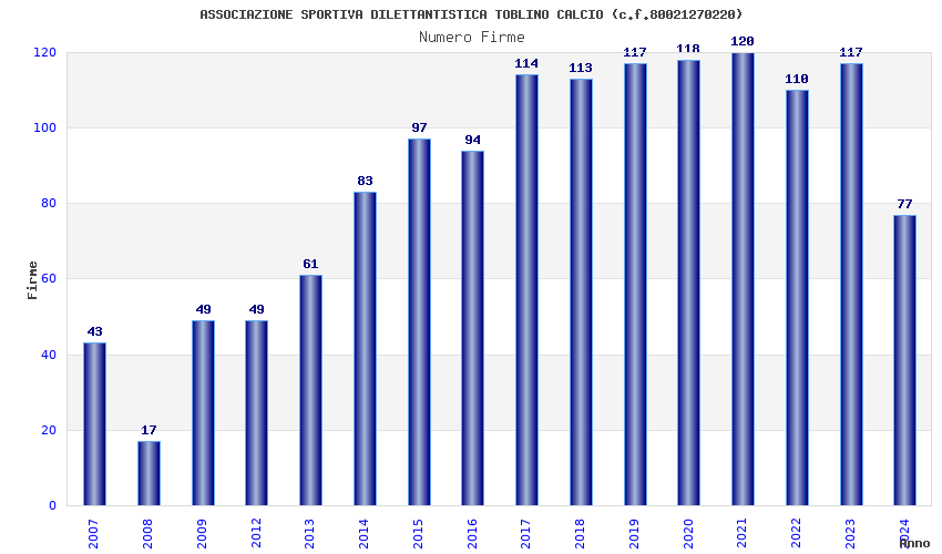 | 2021 | 120 | 3.416,66 | 28,47 | 15.749 | 384 | 178 | 3 |