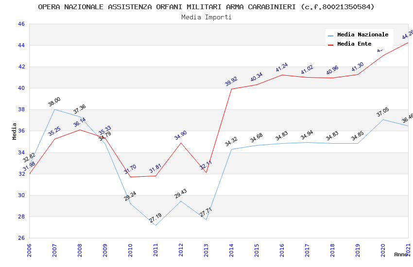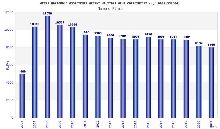 | Anno | Firme | Importi | Media | Naz. | Reg. | Prov. | Comu. |