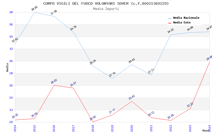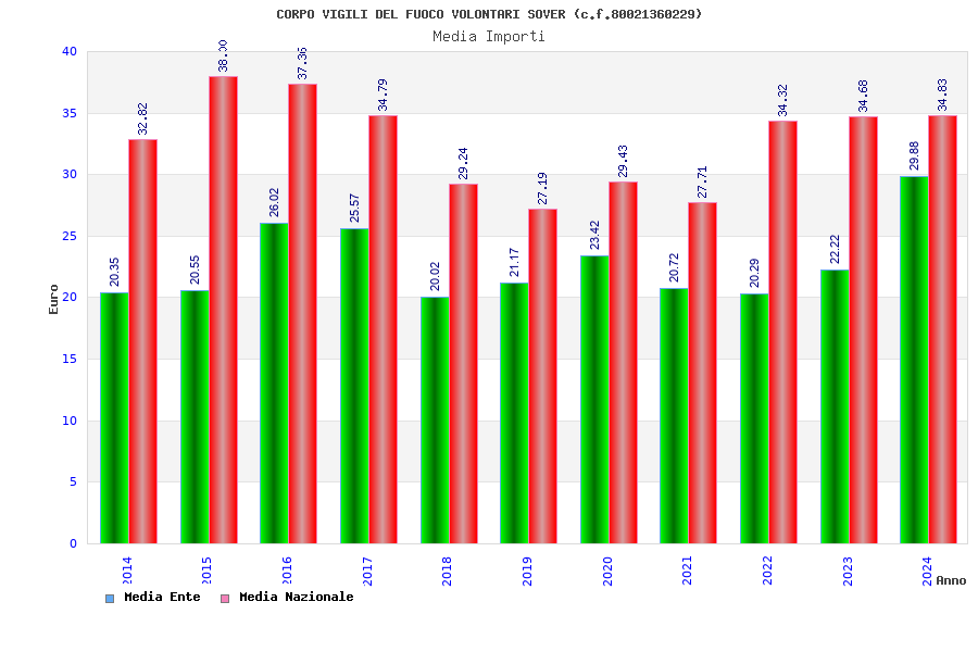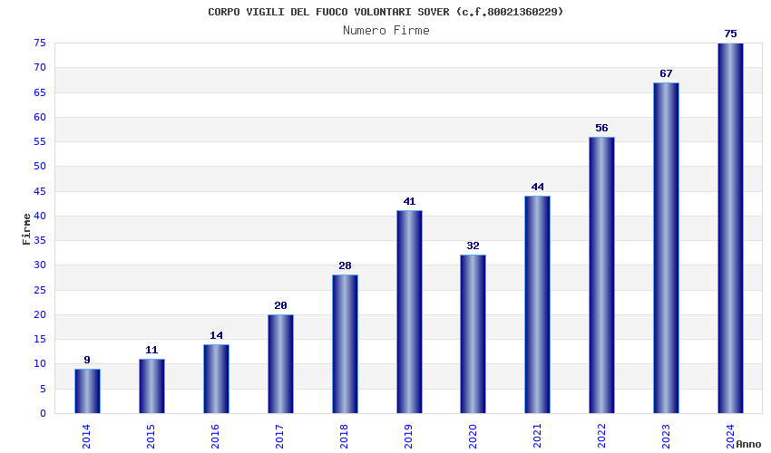 | Anno | Firme | Importi | Media | Naz. | Reg. | Prov. | Comu. |