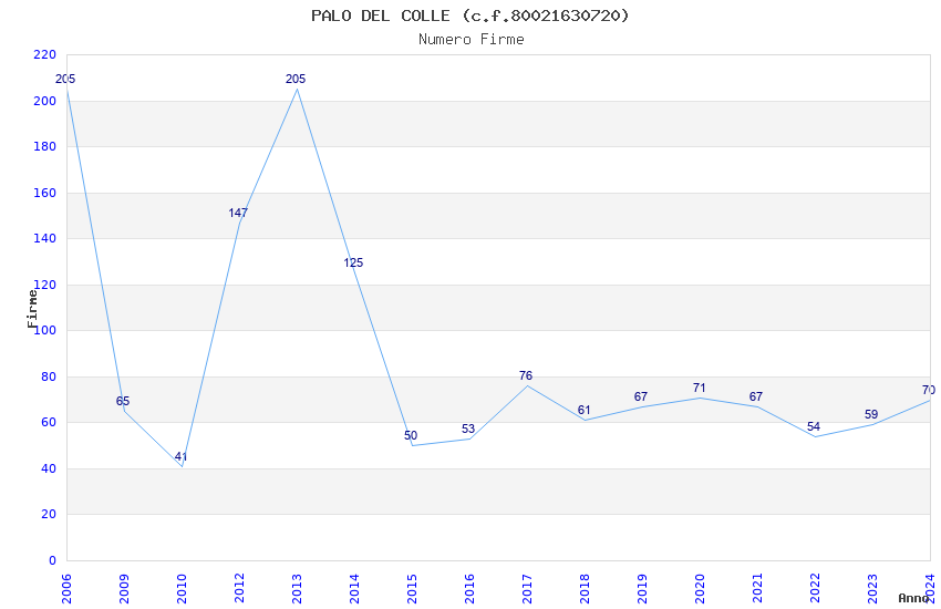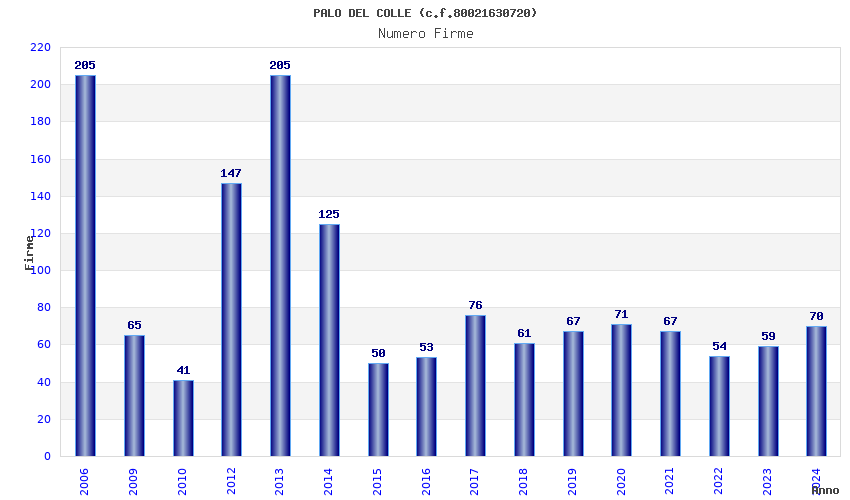 | 2013 | 205 | 2.620,58 | 12,78 | 15.214 | 689 | 233 | 4 |