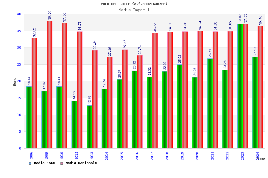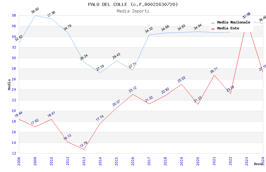| Anno | Firme | Importi | Media | Naz. | Reg. | Prov. | Comu. |