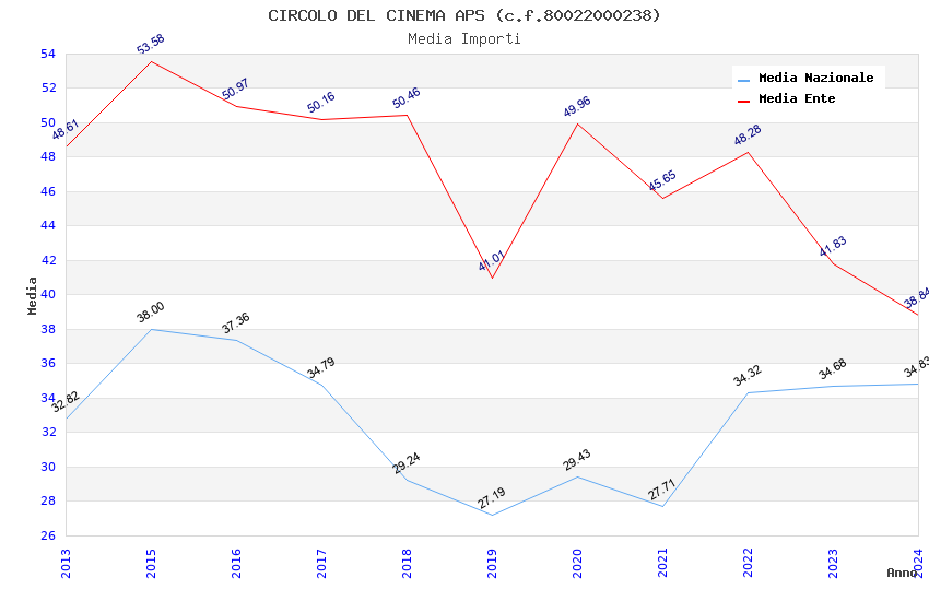 | Anno | Firme | Importi | Media | Naz. | Reg. | Prov. | Comu. |