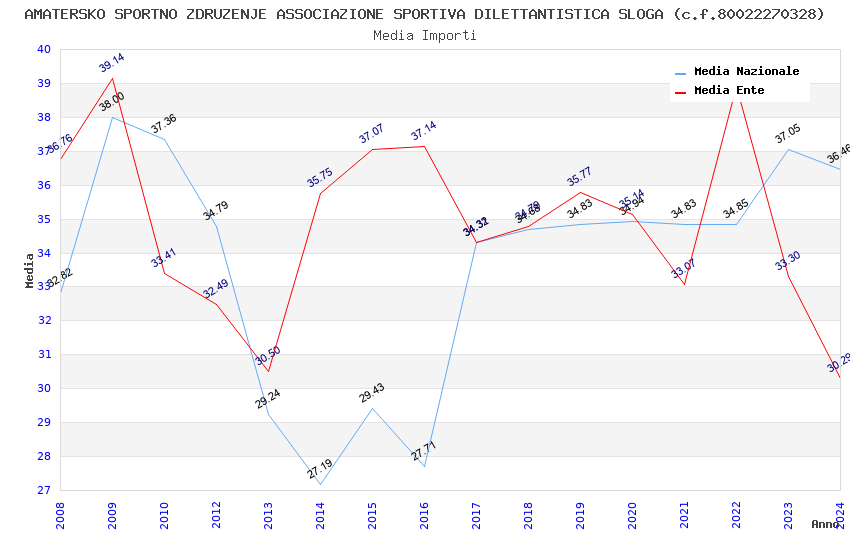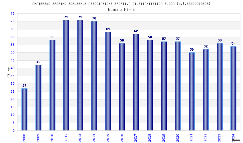 | Anno | Firme | Importi | Media | Naz. | Reg. | Prov. | Comu. |
