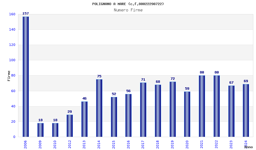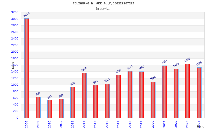 | Anno | Firme | Importi | Media | Naz. | Reg. | Prov. | Comu. |