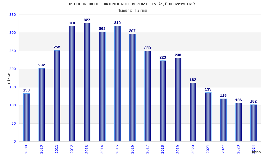 | Anno | Firme | Importi | Media | Naz. | Reg. | Prov. | Comu. |