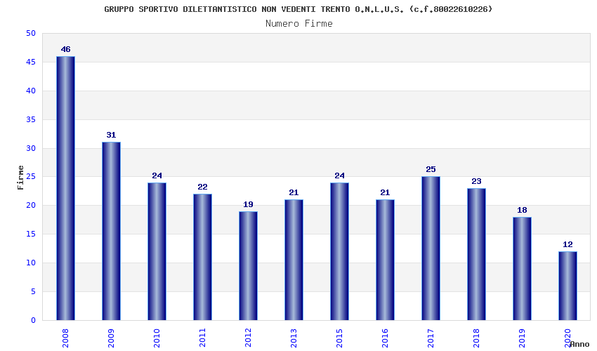 | Anno | Firme | Importi | Media | Naz. | Reg. | Prov. | Comu. |