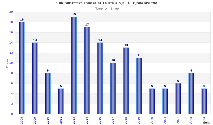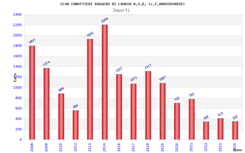 | Anno | Firme | Importi | Media | Naz. | Reg. | Prov. | Comu. |