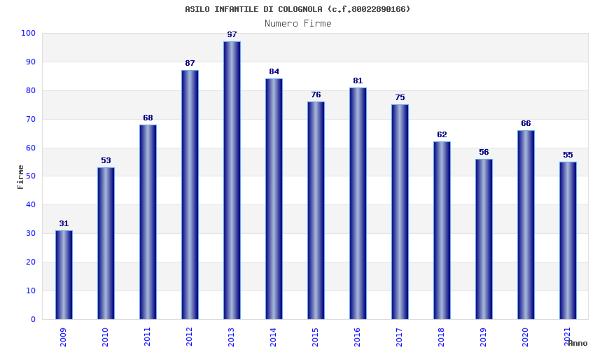 | Anno | Firme | Importi | Media | Naz. | Reg. | Prov. | Comu. |