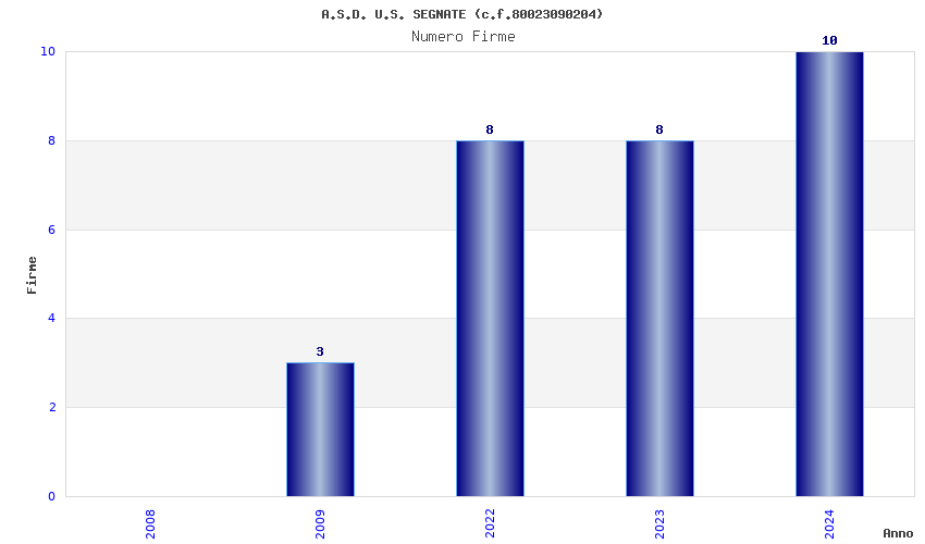| Anno | Firme | Importi | Media | Naz. | Reg. | Prov. | Comu. |