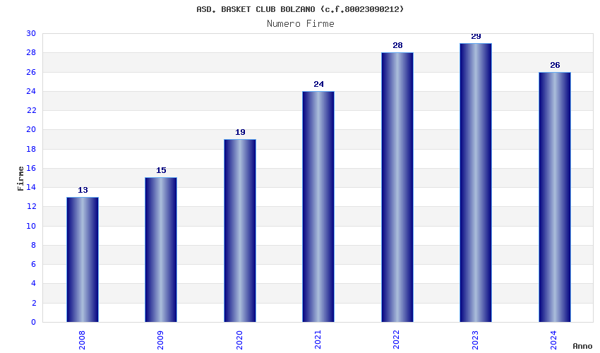 | Anno | Firme | Importi | Media | Naz. | Reg. | Prov. | Comu. |