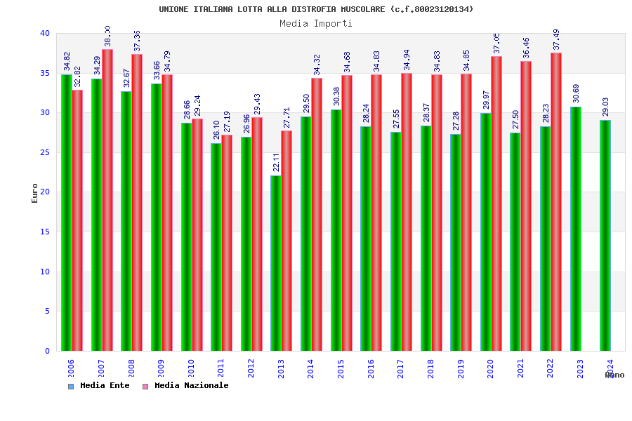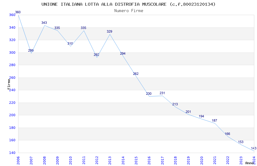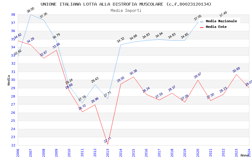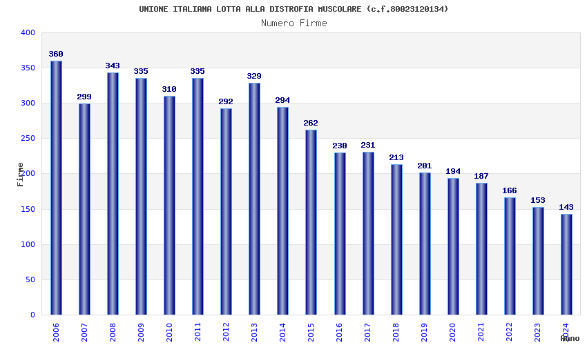 | Anno | Firme | Importi | Media | Naz. | Reg. | Prov. | Comu. |