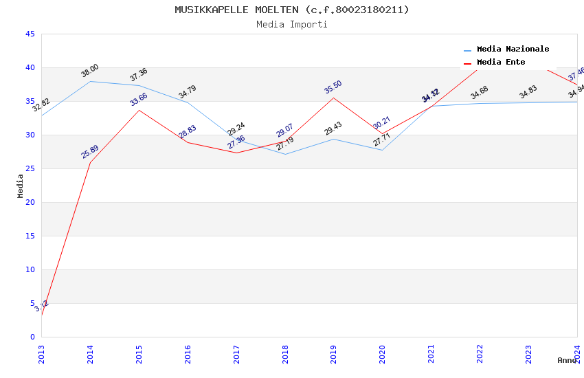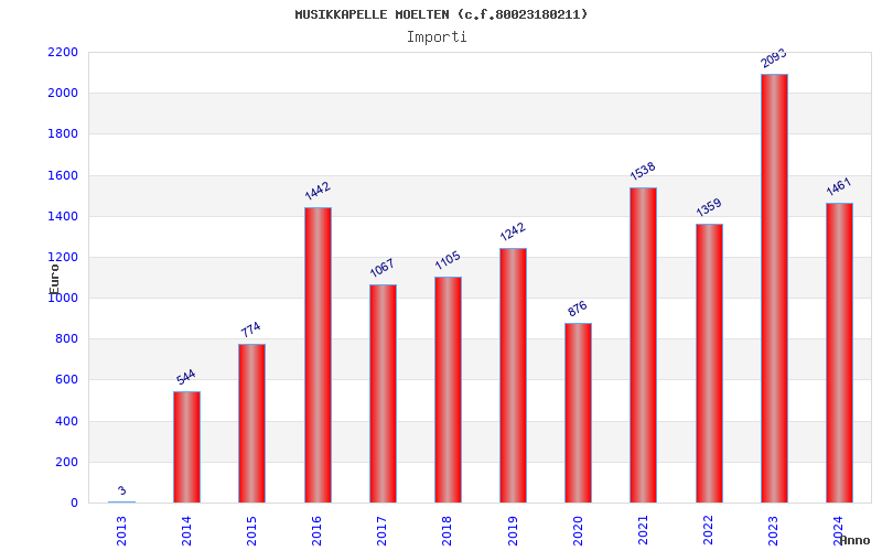 | Anno | Firme | Importi | Media | Naz. | Reg. | Prov. | Comu. |