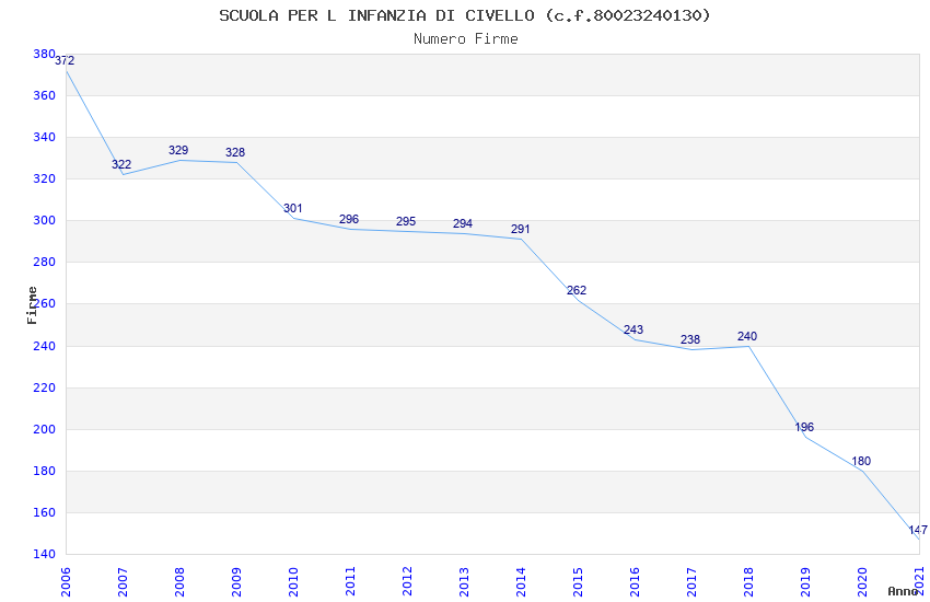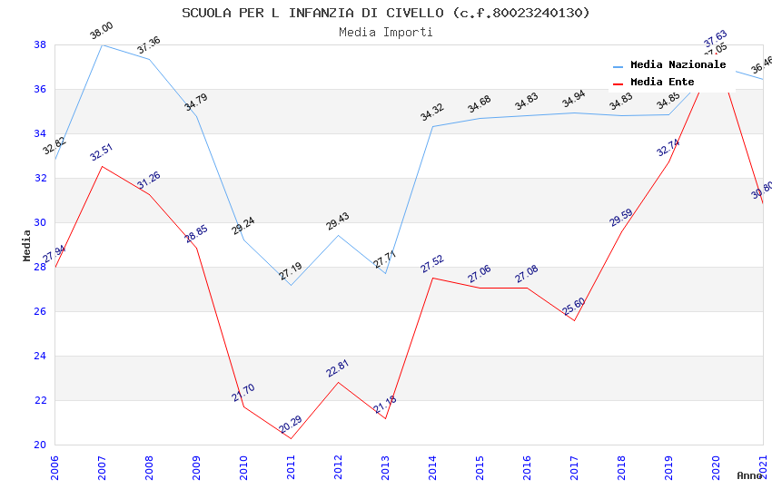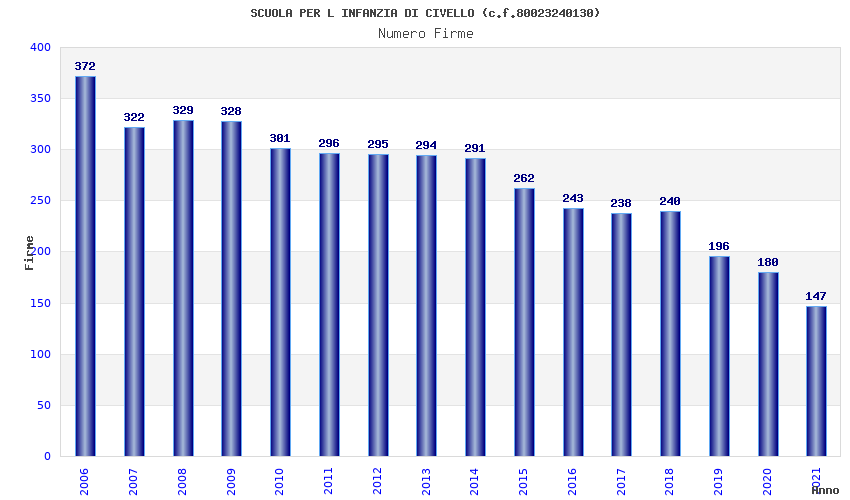| Anno | Firme | Importi | Media | Naz. | Reg. | Prov. | Comu. |