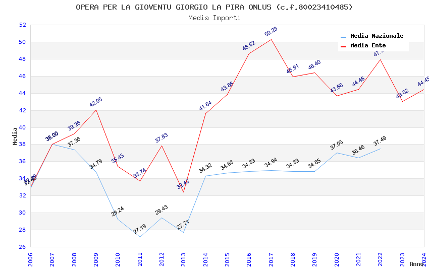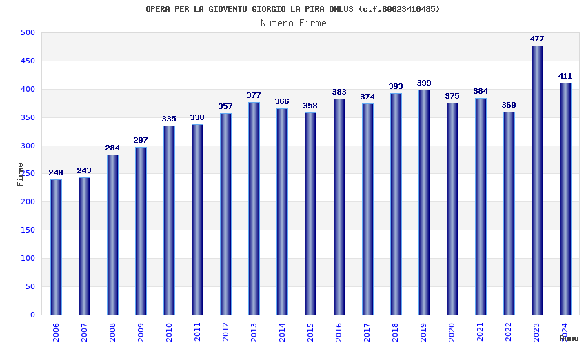| Anno | Firme | Importi | Media | Naz. | Reg. | Prov. | Comu. |