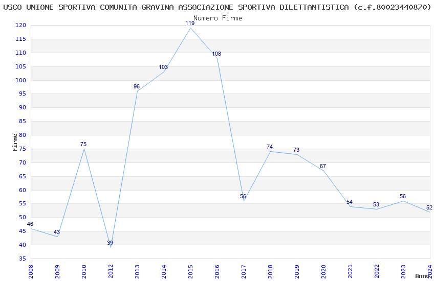 | 2016 | 108 | 2.562,86 | 23,73 | 19.273 | 1.149 | 229 | 2 |