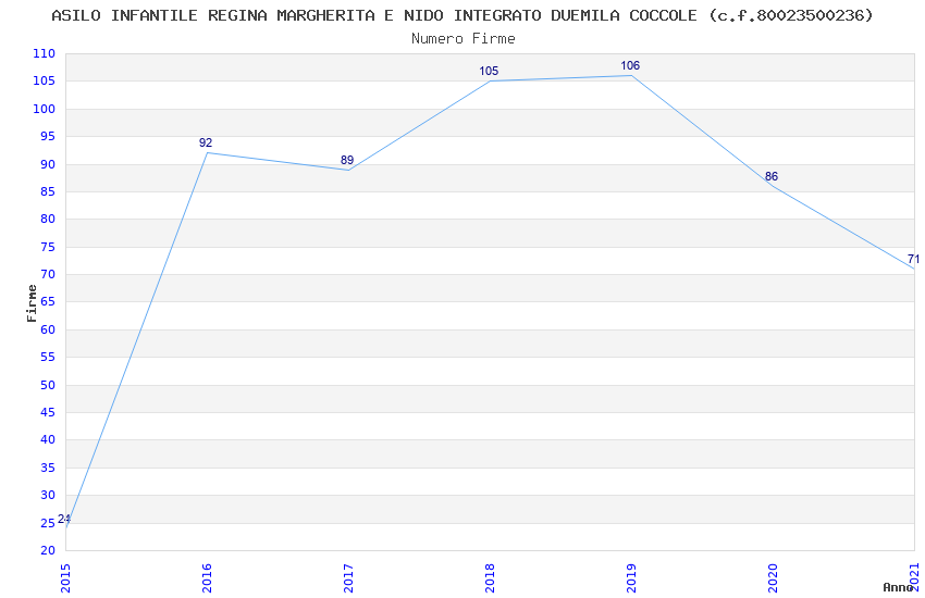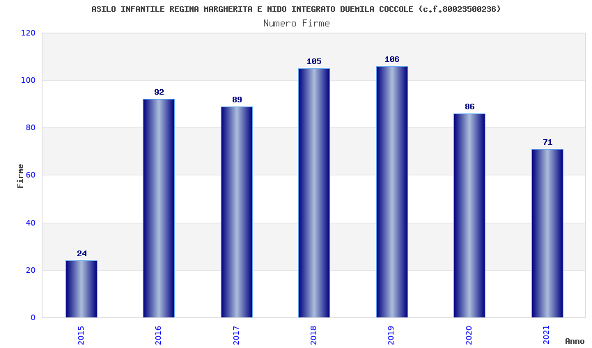 | Anno | Firme | Importi | Media | Naz. | Reg. | Prov. | Comu. |