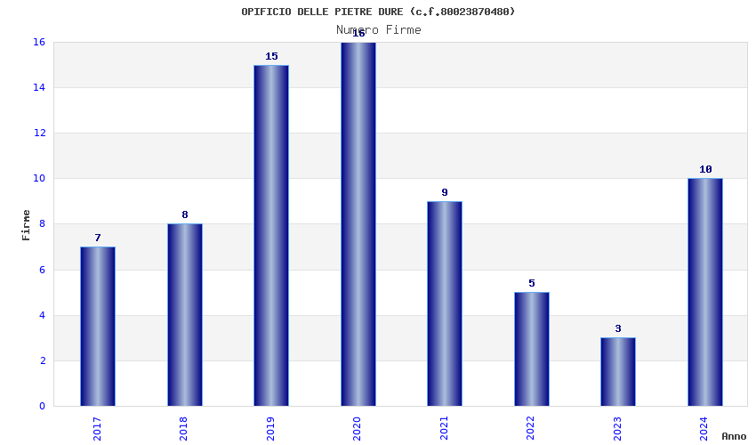 | Anno | Firme | Importi | Media | Naz. | Reg. | Prov. | Comu. |