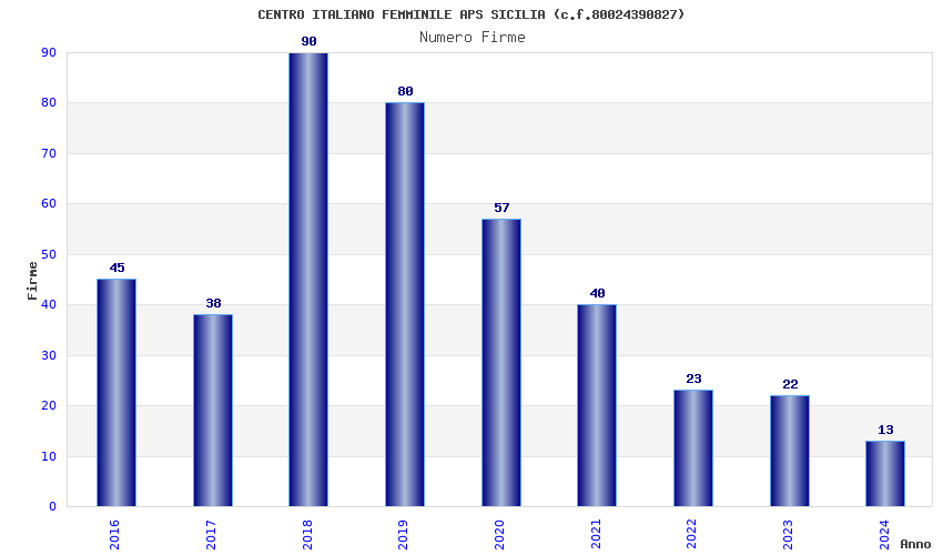 | Anno | Firme | Importi | Media | Naz. | Reg. | Prov. | Comu. |