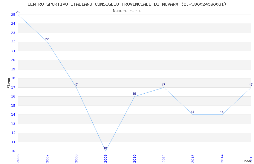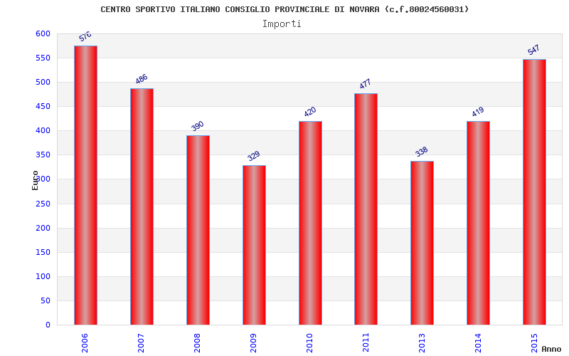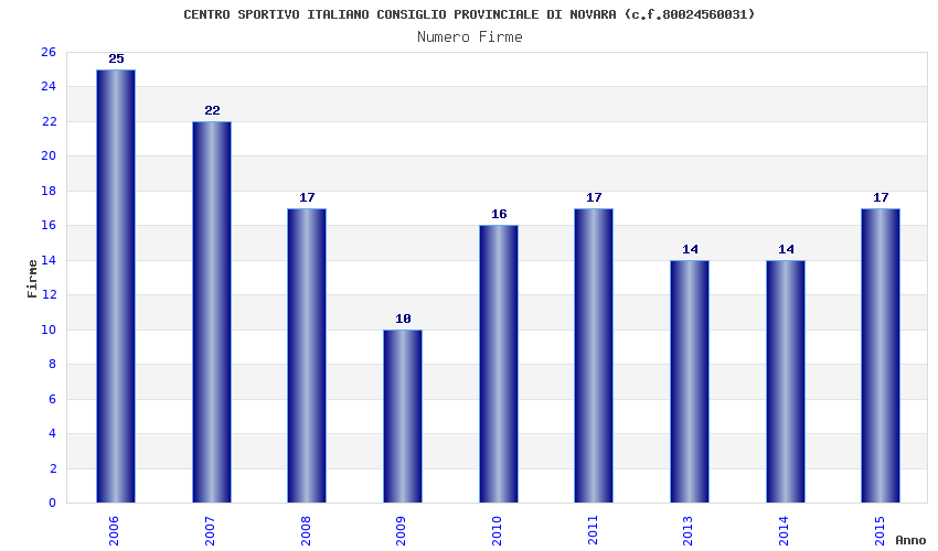 | Anno | Firme | Importi | Media | Naz. | Reg. | Prov. | Comu. |