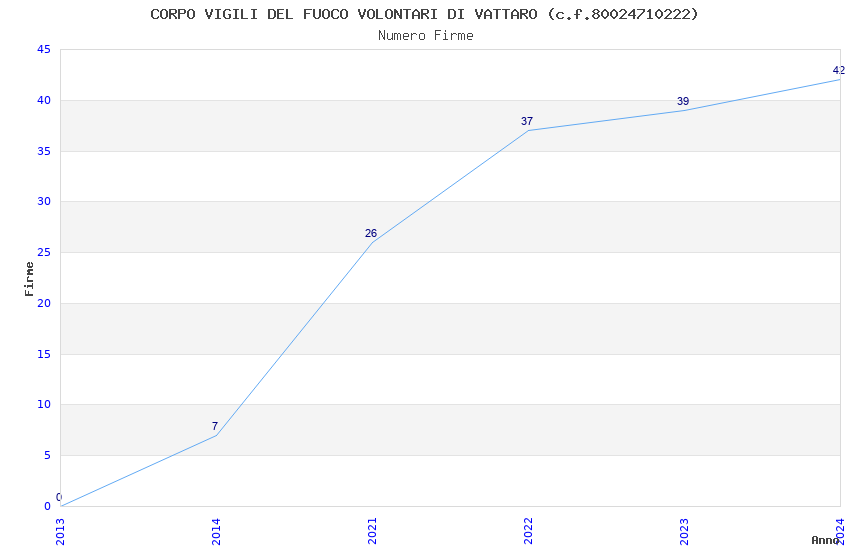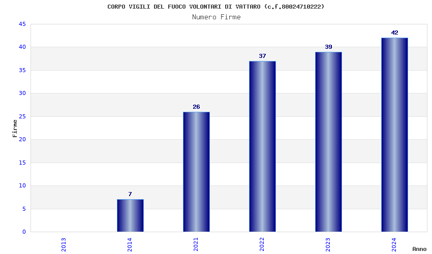 | Anno | Firme | Importi | Media | Naz. | Reg. | Prov. | Comu. |