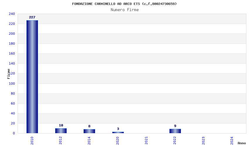 | Anno | Firme | Importi | Media | Naz. | Reg. | Prov. | Comu. |