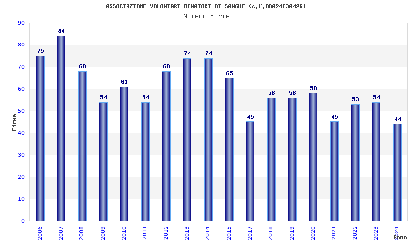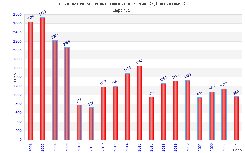 | Anno | Firme | Importi | Media | Naz. | Reg. | Prov. | Comu. |