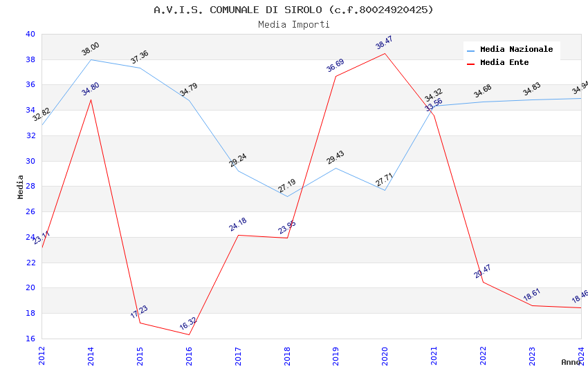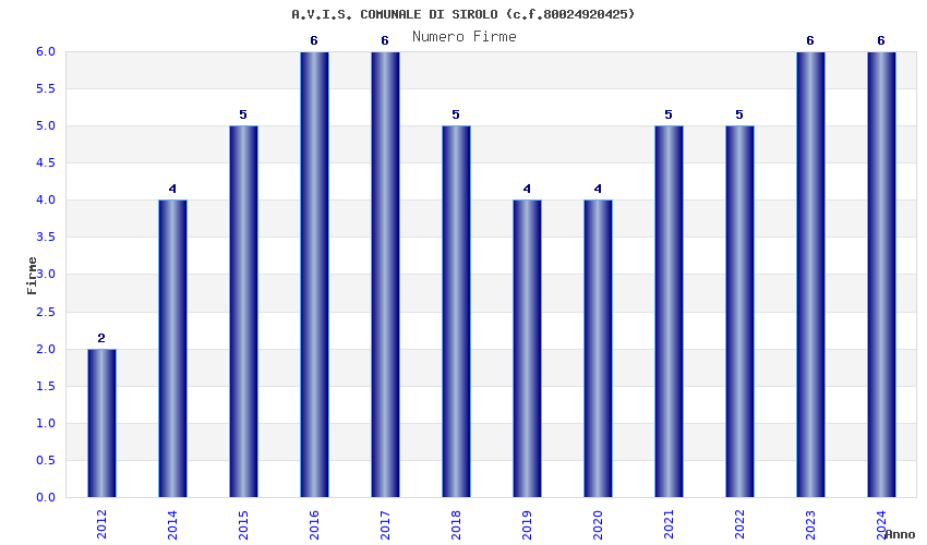 | Anno | Firme | Importi | Media | Naz. | Reg. | Prov. | Comu. |