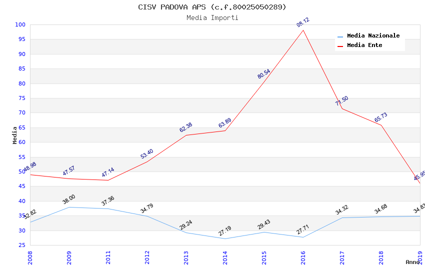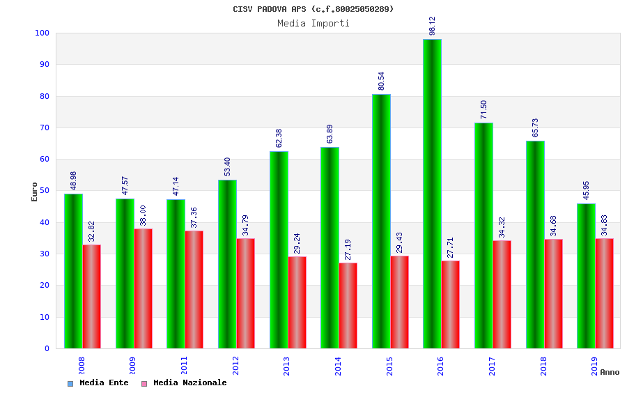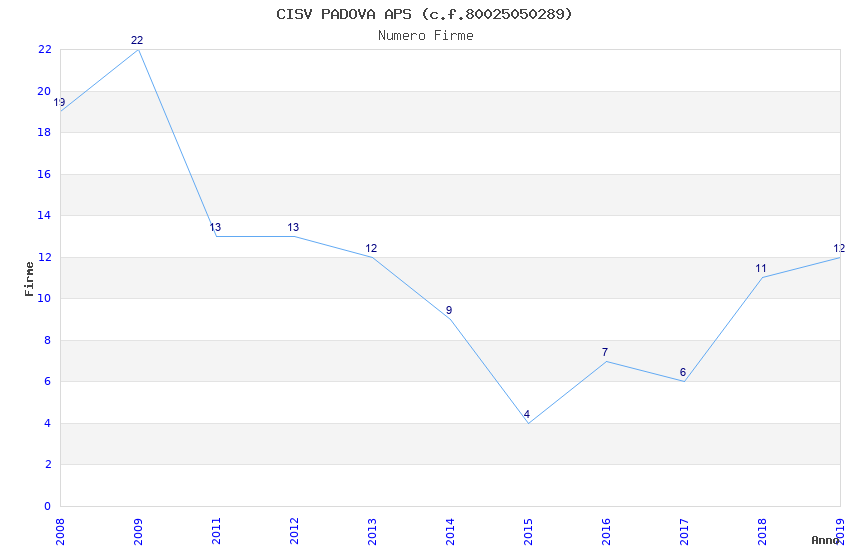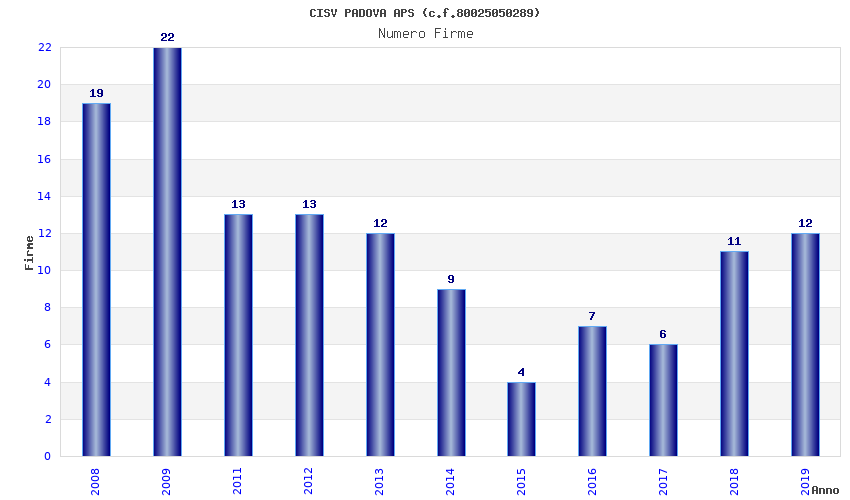 | Anno | Firme | Importi | Media | Naz. | Reg. | Prov. | Comu. |