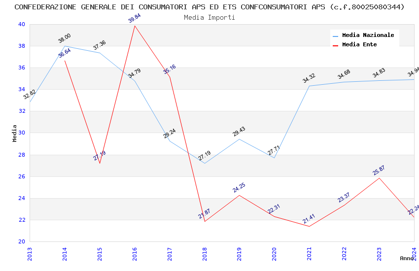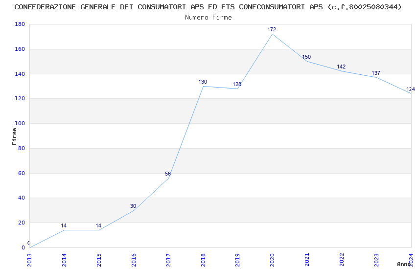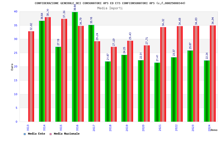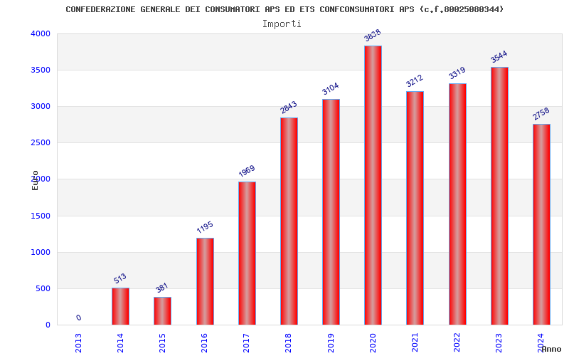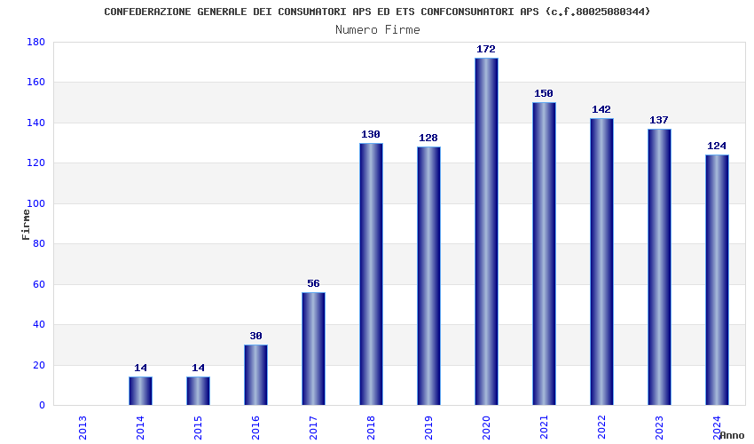 | Anno | Firme | Importi | Media | Naz. | Reg. | Prov. | Comu. |