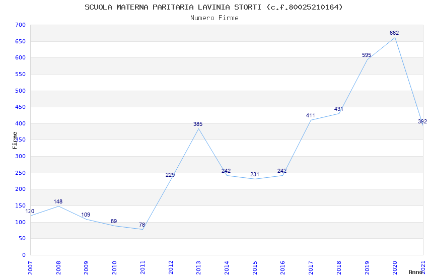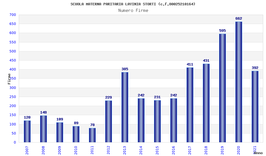 | Anno | Firme | Importi | Media | Naz. | Reg. | Prov. | Comu. |