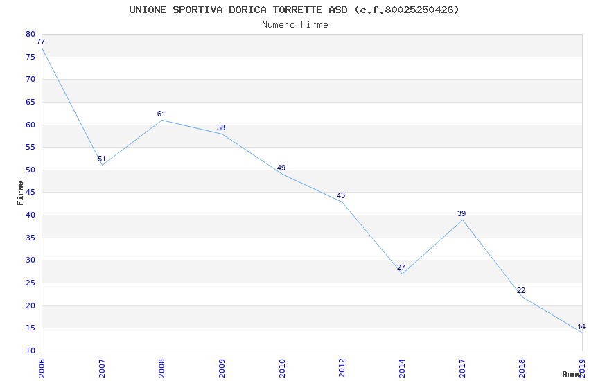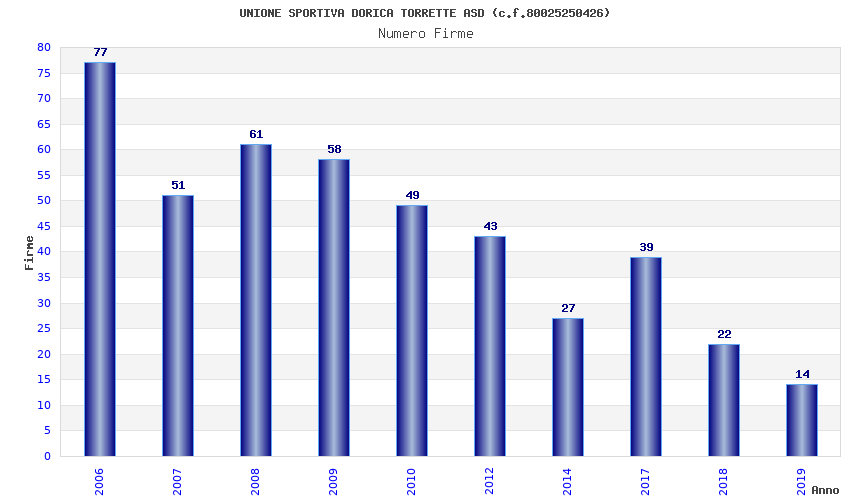 | Anno | Firme | Importi | Media | Naz. | Reg. | Prov. | Comu. |