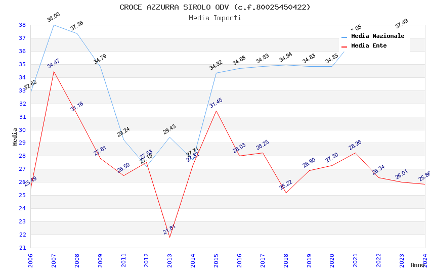 | Anno | Firme | Importi | Media | Naz. | Reg. | Prov. | Comu. |