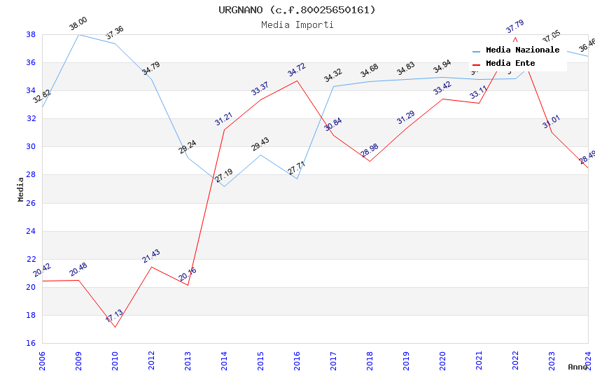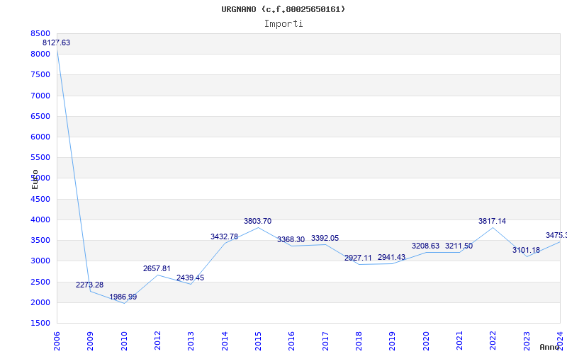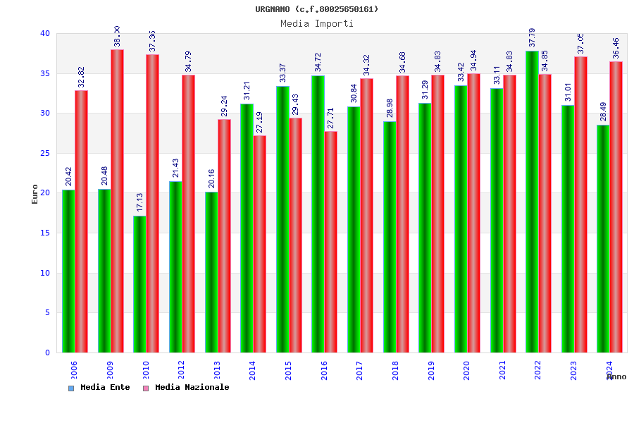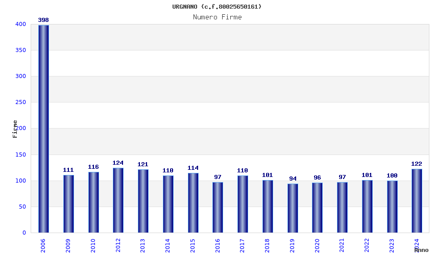 | Anno | Firme | Importi | Media | Naz. | Reg. | Prov. | Comu. |