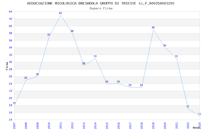 | 2011 | 43 | 711,42 | 16,54 | 22.845 | 529 | 131 | 124 |