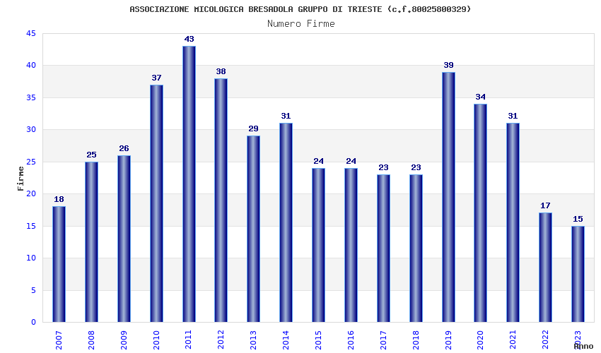 | 2023 | 15 | 781,08 | 52,07 | 40.701 | 1.110 | 218 | 179 |