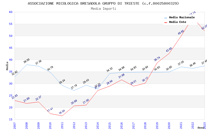 | Anno | Firme | Importi | Media | Naz. | Reg. | Prov. | Comu. |