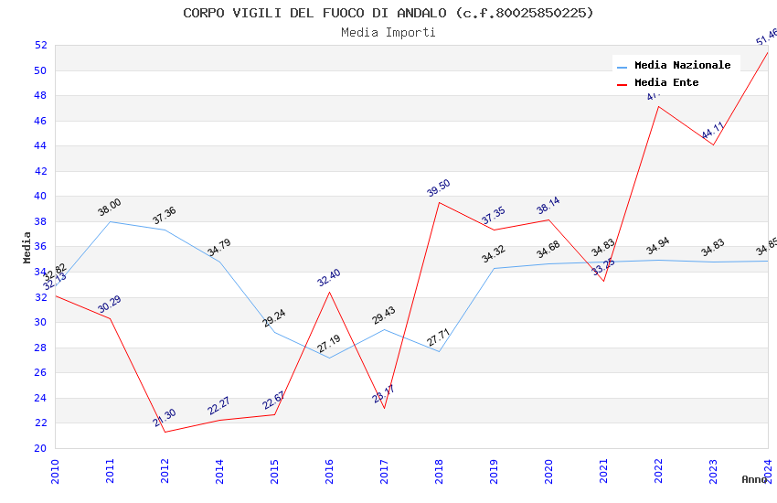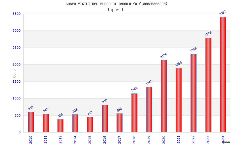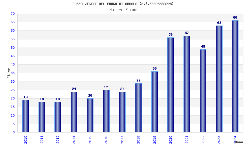 | Anno | Firme | Importi | Media | Naz. | Reg. | Prov. | Comu. |