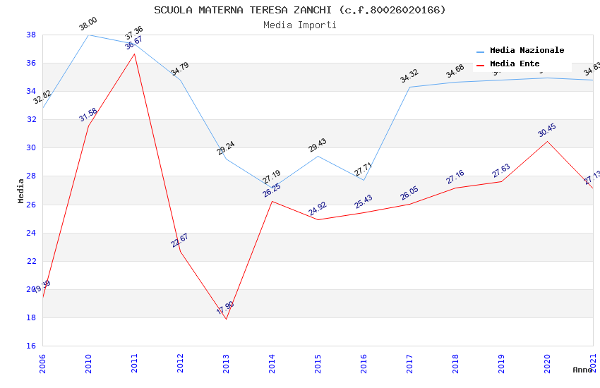 | Anno | Firme | Importi | Media | Naz. | Reg. | Prov. | Comu. |