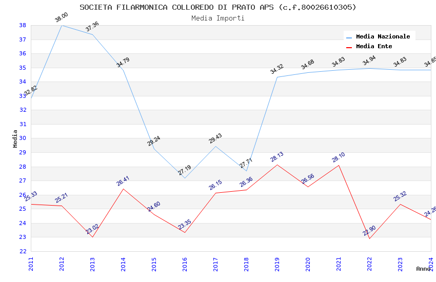 | Anno | Firme | Importi | Media | Naz. | Reg. | Prov. | Comu. |
