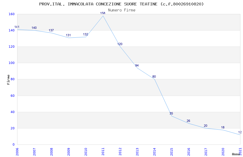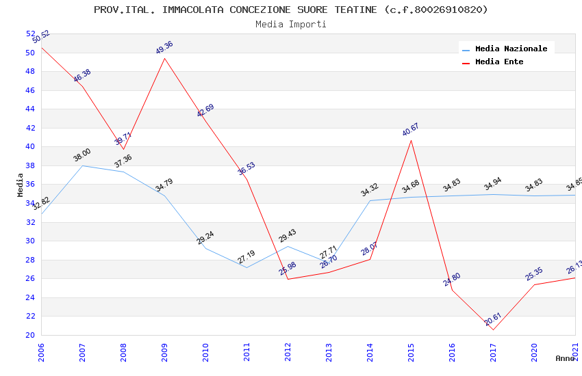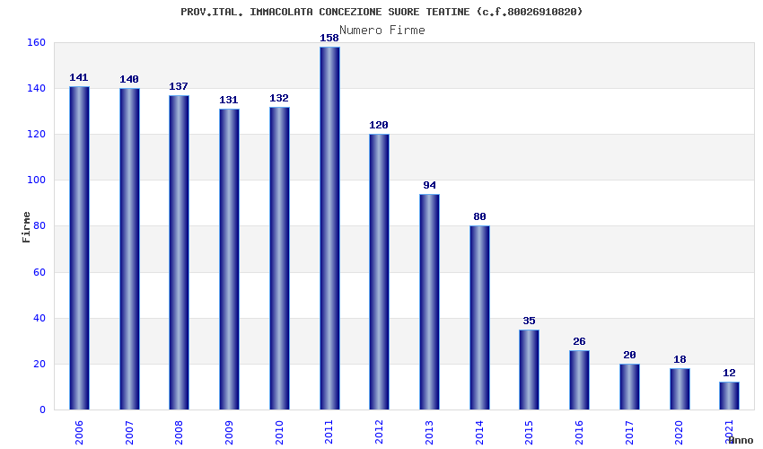 | Anno | Firme | Importi | Media | Naz. | Reg. | Prov. | Comu. |